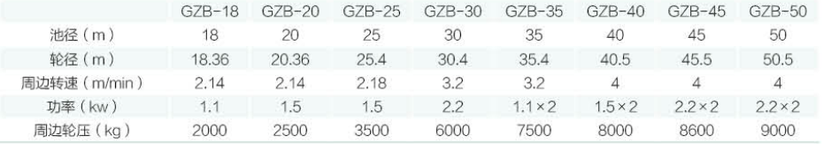 1、當池徑大于30M 時,刮臂一般采用雙臂,且橡膠輪改為鐵心鋼車輪或雙輪圓珠鋼輪。